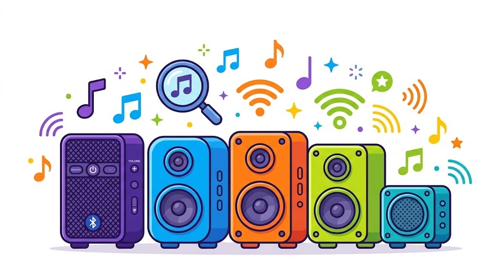この記事では、音響機器専門メディアのレビューデータ・Amazon売れ筋ランキング・SNS上のユーザー評価を徹底的にリサーチし、本当におすすめできるBluetoothスピーカー10機種を厳選しました。さらに上の「診断チャート」を使えば、4つの質問に答えるだけであなたにぴったりの1台が見つかります。
